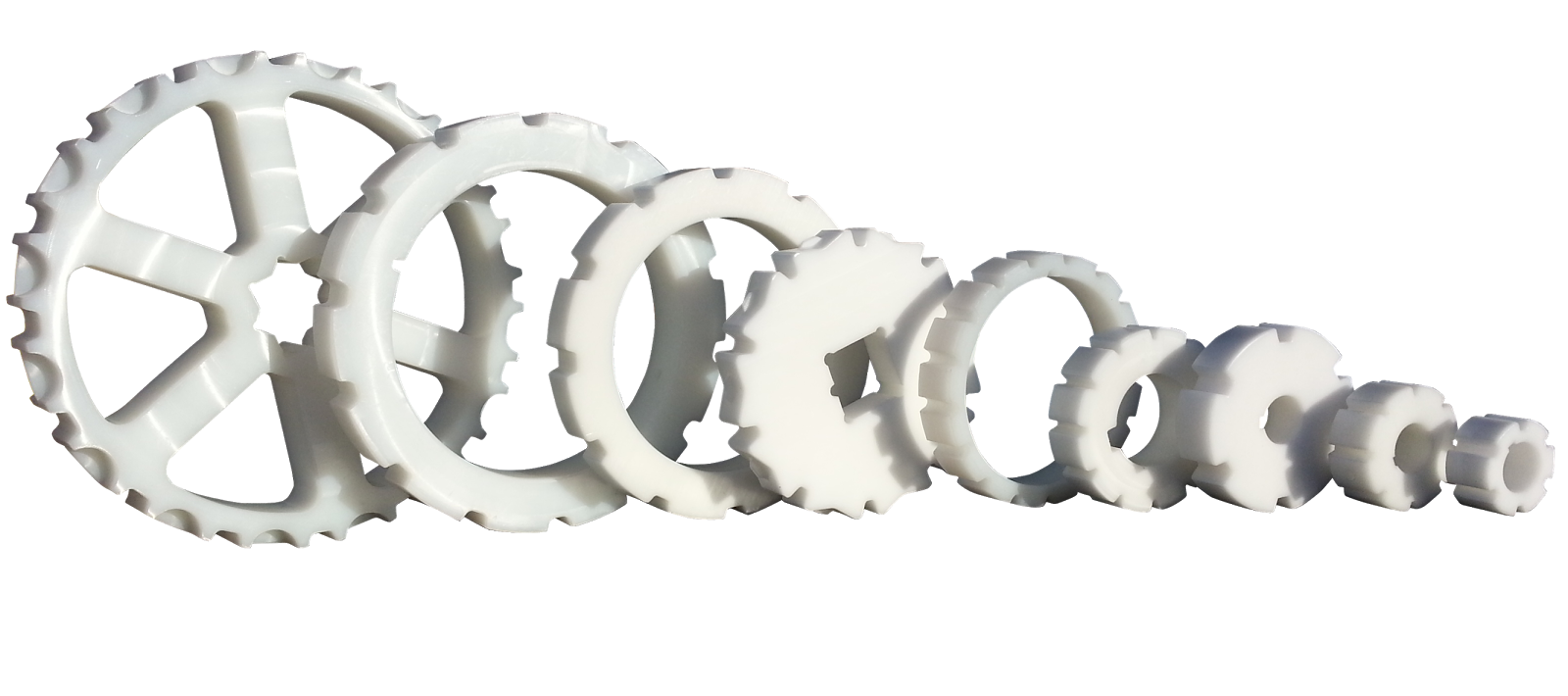 The custom machined sprockets shown above were machined at ProCam Services LLC. out of both acetal and UHMW. ProCam Services LLC. has machined a wide variety of custom sprockets out of acetal, UHMW and PVC for the conveyor industry, belting industry and the specialty machine industry. The custom sprockets that ProCam Services LLC. manufactures are made to order out of virtually any material and for almost any application.